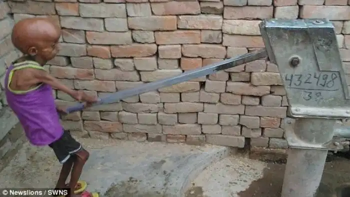 Из-за своей болезни, прогерии Хатчинсона-Гилфорда, Рупеш Кумар из Индии стареет в восемь раз быстрее обычного человека. Сейчас ему 21 год, но его тело - это тело 160-летнего старика. Его вес едва достигает 20 килограммов. По прогнозам врачей, он не должен был прожить дольше 15 лет, однако он уже живет на 6 лет дольше отпущенного, став старейшим выжившим из тех, кого поразило это редкое генетическое заболевание, проявляющееся у одного из 8 миллионов новорожденных. Его внешний вид вызывает у соседей ажиотаж. Однажды родителям Рупеша даже предложили продать его в бродячий цирк, но они с негодованием отказались от сделки.