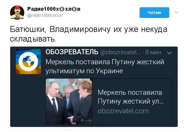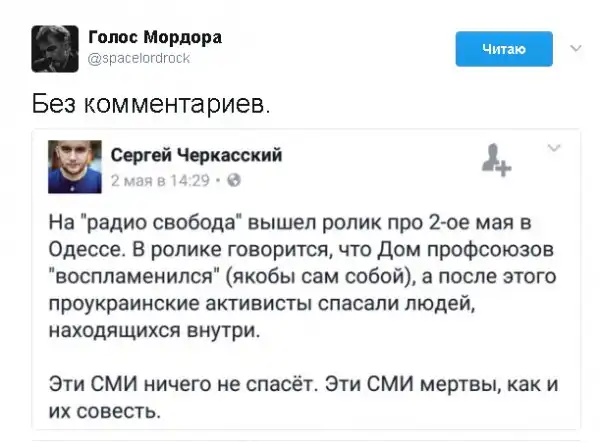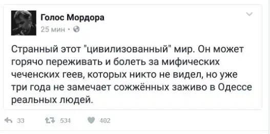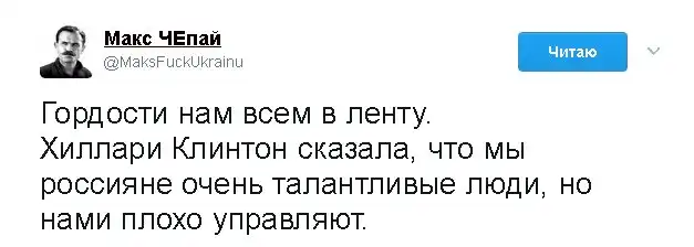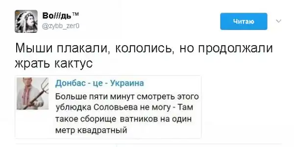 Один постит xyйню откровенно выборочную, другой недоразвитый не пропускает ни одного поста первого, чтобы какую-нибудь абсолютно бессмысленную, но абстрактно-"патриотическую" xyйню в нем не вякнуть, а то рейтинг жестко в минус уходит от его бредней.