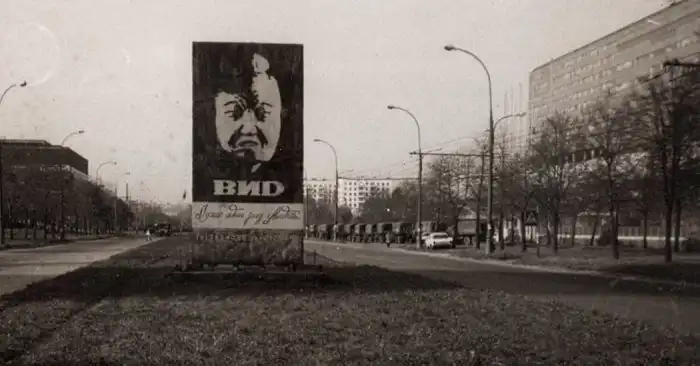 Рекламный щит телекомпании "ВИD" около телецентра "Останкино" в Москве, Россия, 5 октября 1993 года.