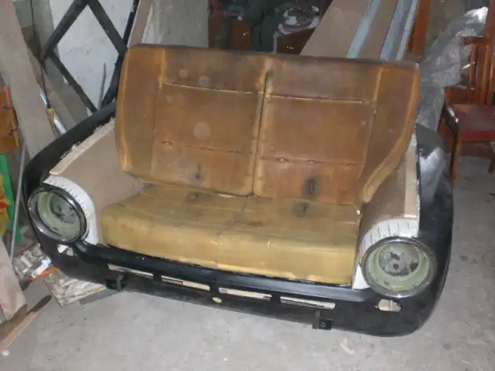 Парень решил сделать диван из Жигулей, а что?! Почему бы и нет! Расцветку кузова и обивки он выбирал, как у "копейки" деда, собственно, в честь него и решил делать этот диван. Далее со слов автора.