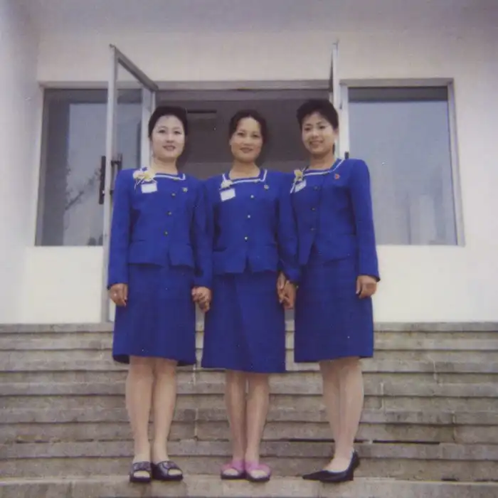 "Официантки одного из ресторанов Пхеньяна. Поначалу из-за формы я принял их за стюардесс. Они говорят, что работа у них скучная, потому что посетителей очень мало".