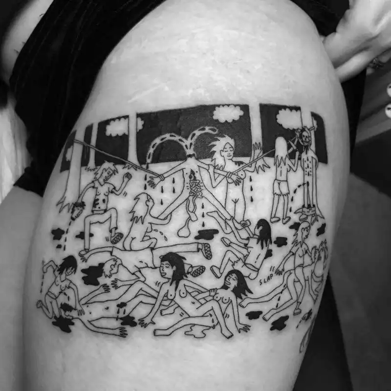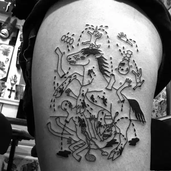 Вечной загадкой для меня остается решимость отдельных граждан увековечивать картинки, явно не содержащие кредо всей жизни, картинки явно проходные, на собственных шкурах, нимало не задумываясь о том, что это навсегда. Калифорнийский мастер тату, известный как Шон из Техаса, походу чувак безбашенный напрочь. Посмотрите какие следы он оставляет на телах своих жертв!