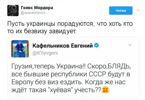 да пофиг на жопу, меня больше высказывание Кафельникова заинтересовало, вот уж действительно, страдающий от безвиза))