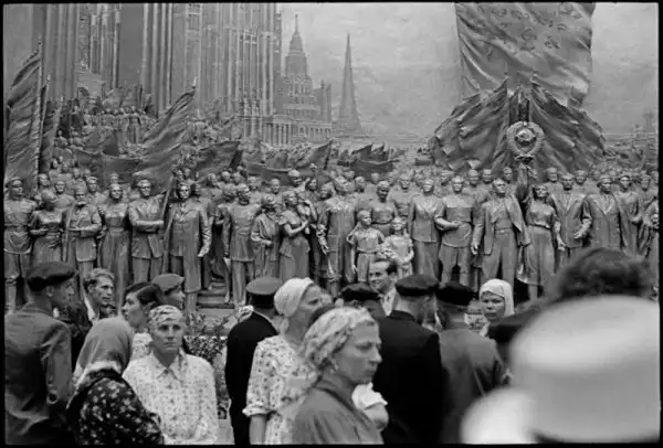 В 1954 году самый "классический" из всех классиков фотографии Анри Картье-Брессон побывал первый раз в СССР. Итогом стал вполне комплиментарный к нашей стране фотосет, изданный в 1955 году в виде фотоальбома "Решающий момент". Вместе с тем, уже на закате жизни, составляя официальное портфолио, художник не включил в него ни одного из тех снимков. АКБ инстинктивно боялся Россию, чувствуя масштабы айсберга, верхушку которого он запечатлел на свою камеру.