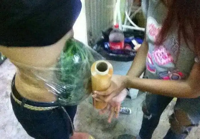 Этим девушкам надоело есть обычный попкорн в кинотеатре, а потому они решили полакомиться во время просмотра фильма арбузом. Пронести арбуз в зал не представляется возможным, но они нашли довольно простой метод. Половинки арбуза помогли им прикинуться беременными и без проблем пройти в зал.