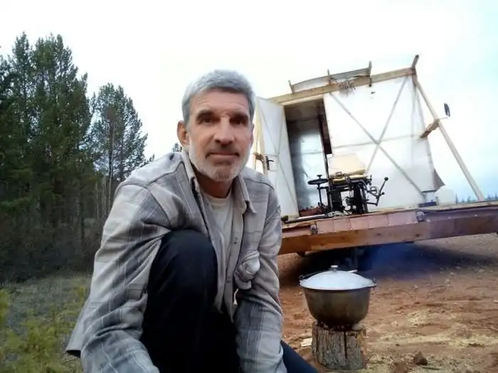 Перед вами не просто вагончик, а самый настоящий дом, причем дом этот мобильный. Конструкция весит примерно 400 кг и может передвигаться своим ходом. Для этого используется велотяга, и хотя скорость получается совсем небольшой, двигается жилье вполне уверенно и на нем получилось преодолеть маршрут от Лены до Ангары. Самое главное, что дом может передвигаться еще и по поверхности воды, где он превращается в катамаран.