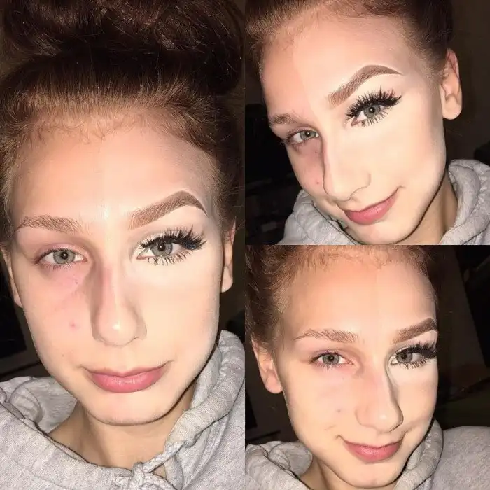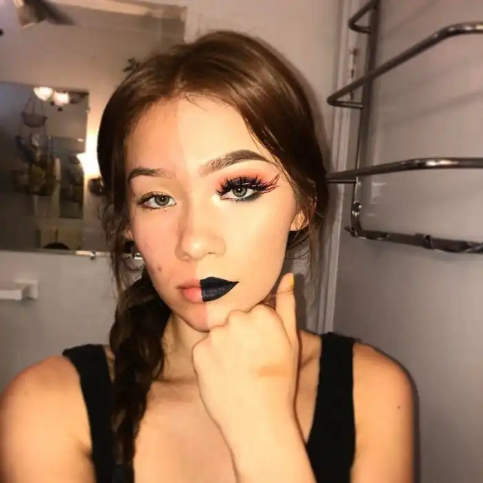 Разница между распространенными фото в стиле «до и после нанесения макияжа» в том, что здесь нет никакого обмана или вторичных мотивов. Все, что было добавлено на лицо, на самом виду — девушки не стыдятся ни своей истинной внешности, ни своего увлечения косметикой.