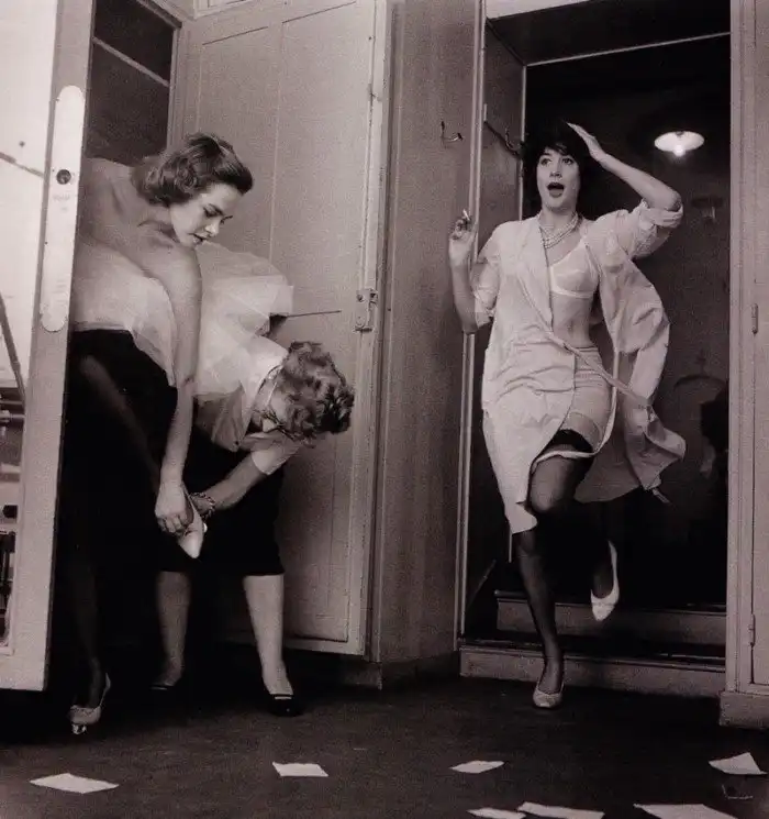 Бэкстейдж на показе в доме моды Ланвин. 1958. Фотограф Роберт Дуано