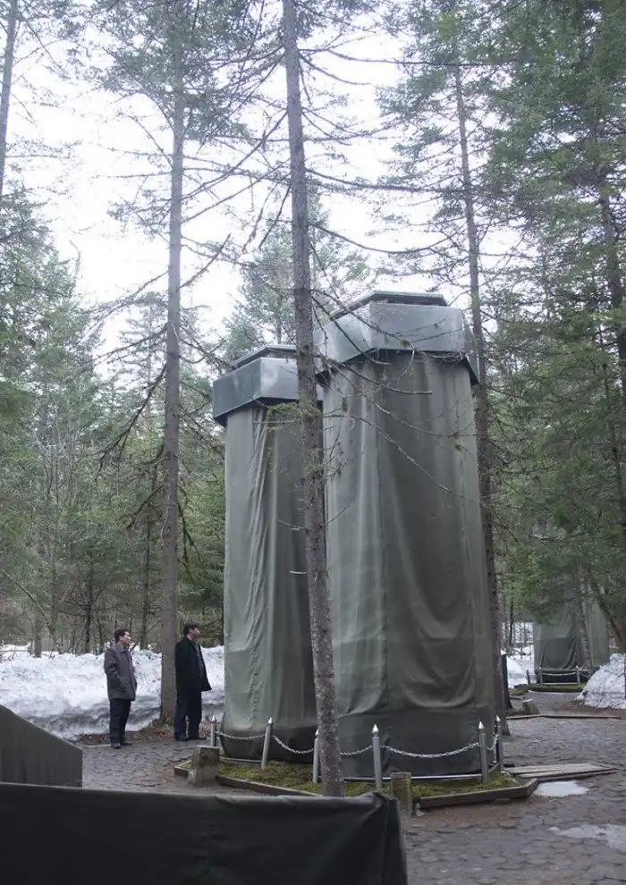 Впоследствии на Пэкнусане, в районе бывшего лагеря Ким Ир Сена, были открыты секретные военные базы. Зимний тулуп постовому явно великоват.