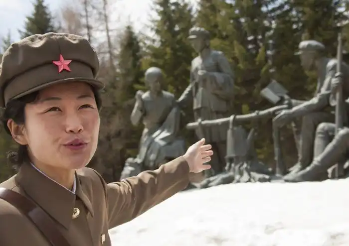 Северокорейские экскурсанты обязаны слушать гида, который рассказывает им историю Пэктусана и Ким Ир Сена. Эти легенды они выслушивают тысячи раз, с самого детства.