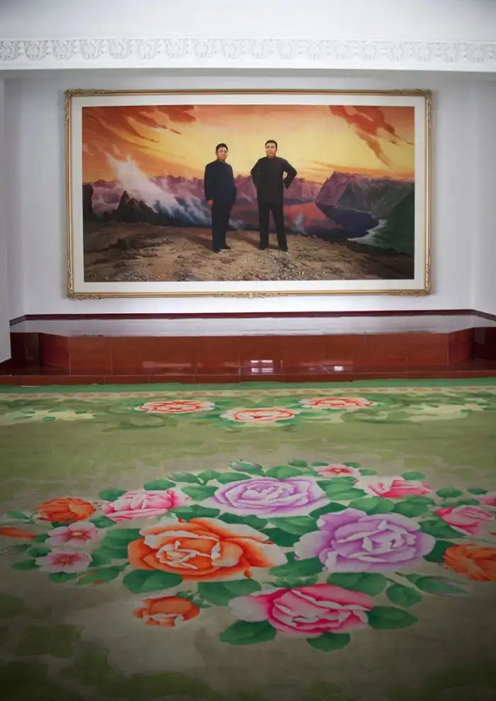 В Северной Корее можно увидеть множество картин и фресок, изображающих дорогих лидеров Ким Ир Сена и Ким Чен Ира на фоне вулкана Пэктусан. Одна из них висит и в гостинице для иностранцев, расположенной у подножия вулкана.