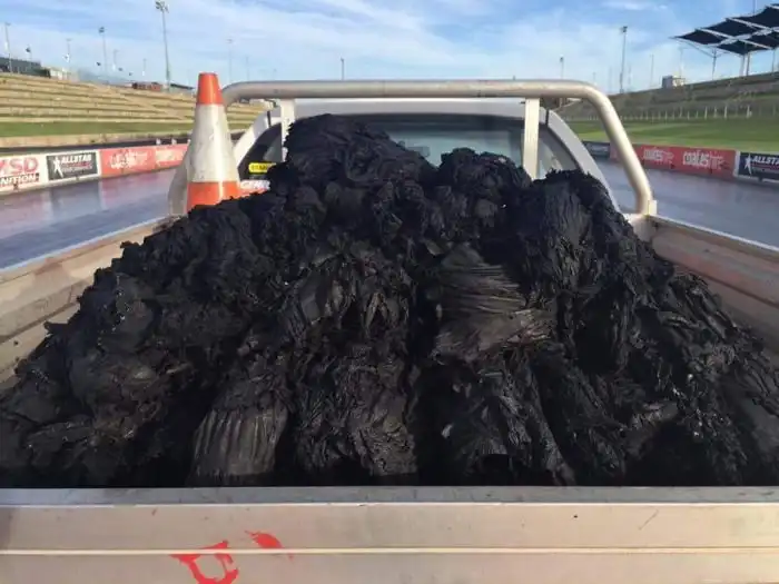 Это остатки резины от покрышек гоночных автомобилей, участвовавших в заездах по дрэг-рейсингу. И такое количество резины накапливается на асфальте… всего лишь за один день.