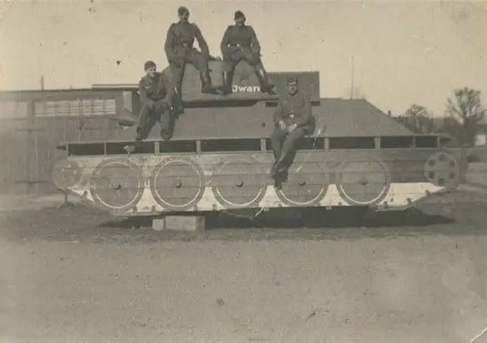 Девочка с куклой на солдатских ранцах, 1917 год, Реймс, Франция