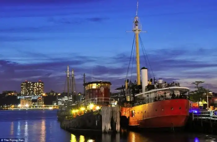Баржа Frying Pan, что в переводе означает "Сковородка", была построена в 1929 году. Три года она пролежала на дне гавани Чезапик бей, после чего ее подняли на поверхность и перетащили в Нью-Йорк, где она превратилась в один из самых модных клубов города.