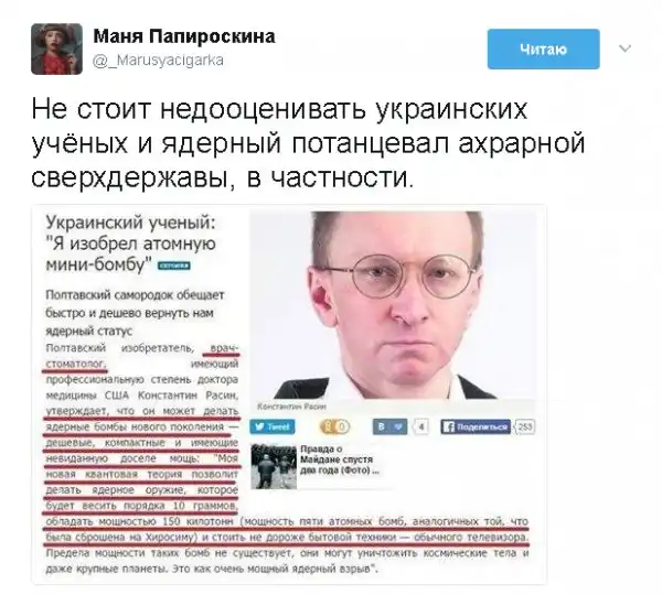 У них там страна великих возможностей: стоматологи-ядерщики, патроны с коноплей(усиливает дульную энергию)...Куда там Левше с его блохой, когда тут стоматолог может ядерную бомбу собрать, да еще и невиданной силы.