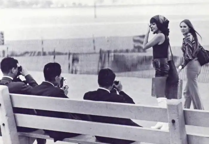 Во все времена мужчины любили смотреть на симпатичных девушек и женщин, несмотря на то, что открыто пялиться на них считалось неприличным. Так или иначе, но это желание было гораздо сильнее, чем рамки приличия, придуманные обществом, а потому многие представители сильного пола ничуть не стесняясь глазели на понравившихся им девушек, и данные фото являются ярким тому подтверждением.