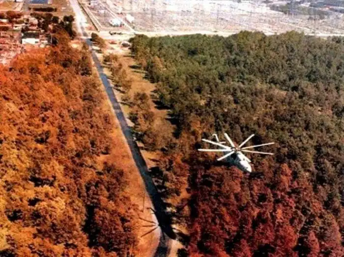 Массив деревьев, расположенный в двух километрах от места трагедии, имеющий название “Рыжий лес” - еще одно напоминание о страшном дне. Яркий буро-рыжий окрас деревья приобрели в результате поглощения высокой дозы радиации в первые дни после аварии.