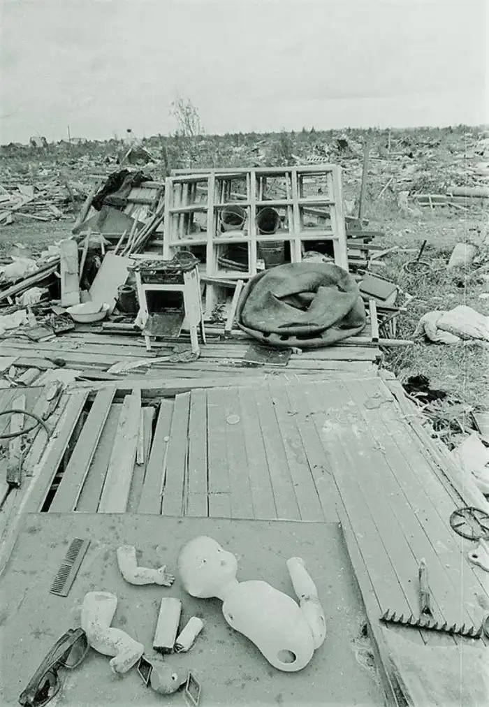 Другого огородника выбросило из дома метров на 15, рядом в канаве лежали, разбитые родные «Жигули», а на клумбе росли два пиона: красный и белый. От красного не осталось и следа, а на белом смерч не тронул ни одного лепестка. Стол с инструментами исчез бесследно, а ящик с гвоздями остался.