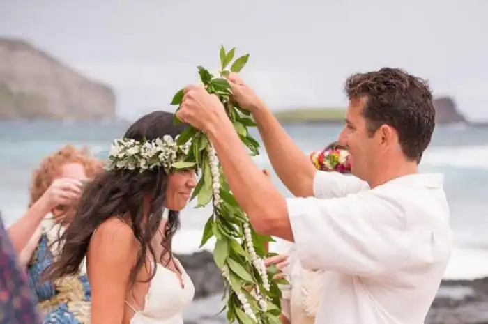 На традиционных гавайских свадьбах жених носит все белое. Почти каждый, кто заключает здесь брак, использует в свадебной церемонии цветочные гирлянды. Невесты также часто украшают свои волосы живыми цветами.