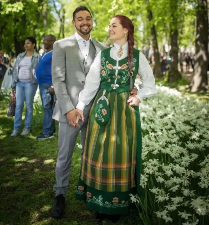 В Норвегии обычно надевают банад — традиционный костюм для особых случаев, таких как свадьба или крестины.