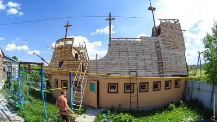 В селе Купино Шебекинского района Белгородской области во дворе одного из домов можно встретить строение, выполненное в форме парусного корабля. Строительством дома-корабля занимается местный житель Валерий Кику, который решил придать своему жилью вид галеона «Золотая лань», совершившего второе в истории кругосветное путешествие. Строительные работы ведутся своими силами по мере появления средств, и хотя корабль еще не достроен, выглядит он уже довольно внушительно.