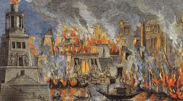 После смерти Александра Македонского в 323 г. до н.э. контроль над Египтом получил его бывший генерал Птолемей I Сотер. Он стремился создать новый интеллектуальный центр в городе Александрия. В результате была выстроена настоящая жемчужина древнего мира, Александрийская библиотека. На полках здесь хранилось более 500 000 свитков папируса — тексты по истории, юриспруденции, математике и науке. К сожалению, в 48 г. до н.э. Юлий Цезарь поджег гавань Александрии во время битвы против египетского правителя Птолемея XIII и библиотека сгорела дотла.