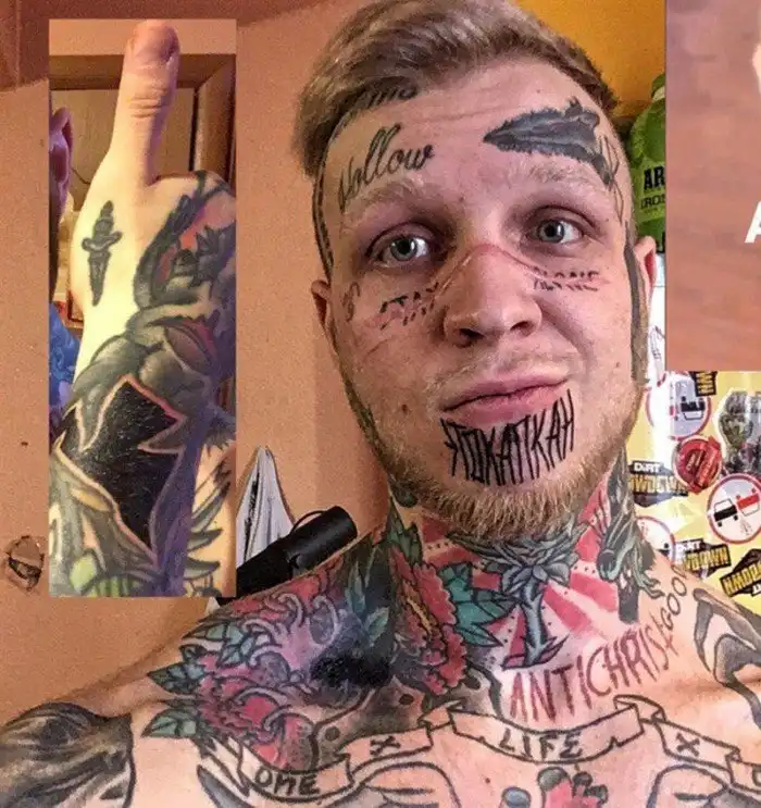 А так же не на шутку увлекается татуировками — и большая часть его тела (в том числе и лицо) покрыта ими.