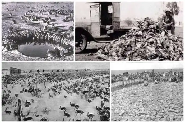 Знаменитая стена от кроликов, принесшая еще больше бед. Идущие на водопой животные умирали от жажды, не в силах преодолеть стену, а кролики просто рыли ходы под ней и плодились дальше.