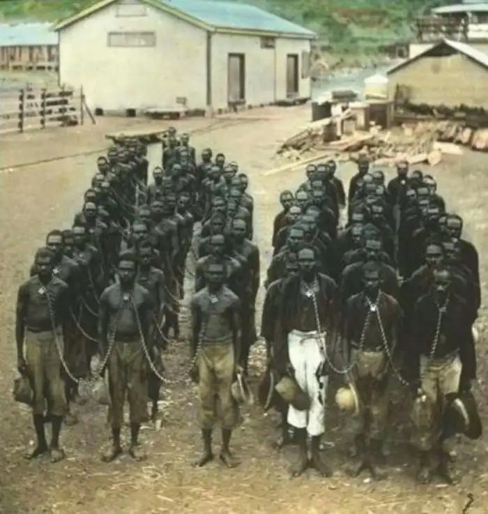 «Цивилизованные» пришельцы тут же стали превращать местных аборигенов в рабов, заставляя работать на своих фермах. Женщин-аборигенок покупали или похищали, образовалась практика похищения детей с целью превращения их в прислугу — фактически в рабов.