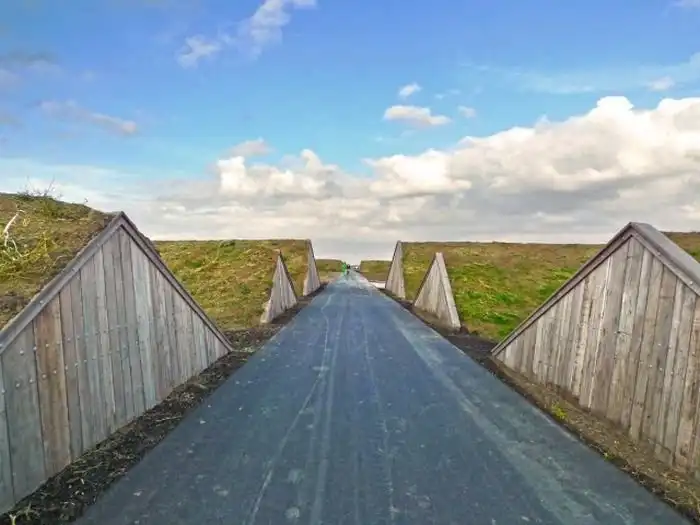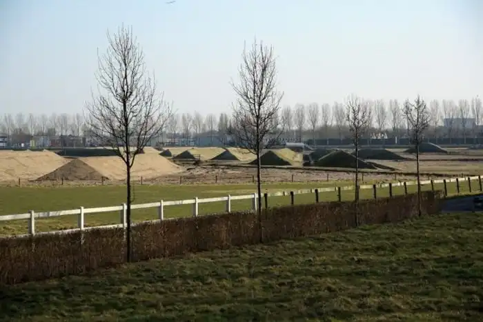 В 17,5 км от Амстердама находится один из самых загруженных аэропортов в мире - аэропорт Схипхол. Каждый день этот аэропорт принимает порядка 1300 рейсов, поэтому практически каждую минуту здесь взлетают и приземляются самолеты. Долгое время жители окрестностей жаловались на раздражающий их шум, ведь из-за ровного ландшафта местности звук взлетающих самолетов можно было слышать в 28 км от аэропорта. В конце 2000-х годов после неудачного эксперимента по управлению шумом, руководство аэропорта обратилось в архитектурно-ландшафтную компанию H+N+S и к художнику Полю де Корту. На юго-западе от аэропорта возвели 150 двухметровых холмов, распложенных на расстоянии 10 метров друг от друга, что помогло снизить уровень шума практически наполовину. Зону звуковых барьеров превратили в парк, получивший название Бьютеншот. В парковой зоне есть пешеходные дорожки, велосипедная дорожка, ромбовидный пруд, в котором специальный механизм создает волны, и декоративные скульптуры.