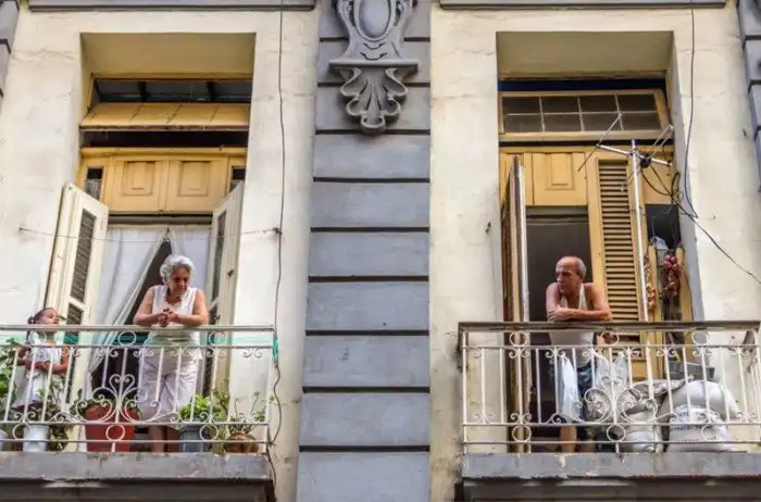 Два поколения кубинцев смотрят на улицу со своих балконов
