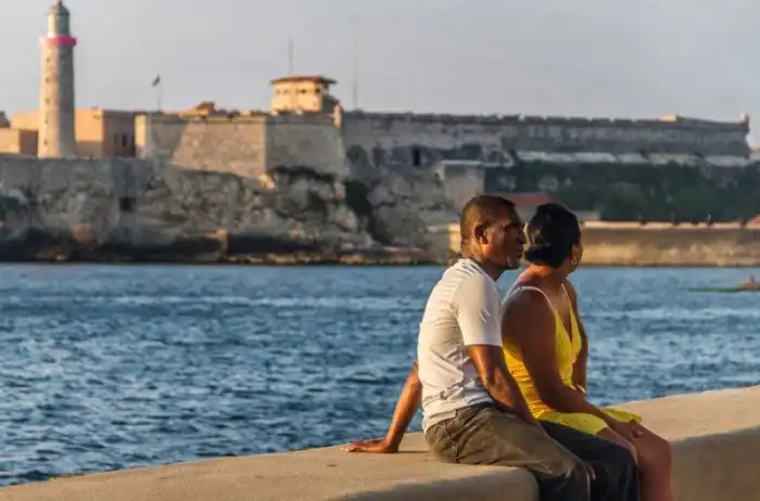 Каждый вечер люди отдыхают на побережье океана. Малекон