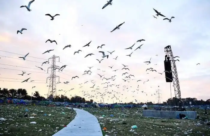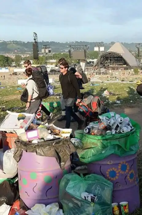Музыкальный фестиваль Гластонбери на полях Англии в этом году посетили 135 000 человек, оставивших после себя 1022 тонны мусора. Для его уборки было нанято 800 человек и выделено более 1 миллиона долларов. После такого фестиваля, земле нужно будет время на восстановление, но, к сожалению, мало кто из посетителей думает об этом, втаптывая мусор в землю.