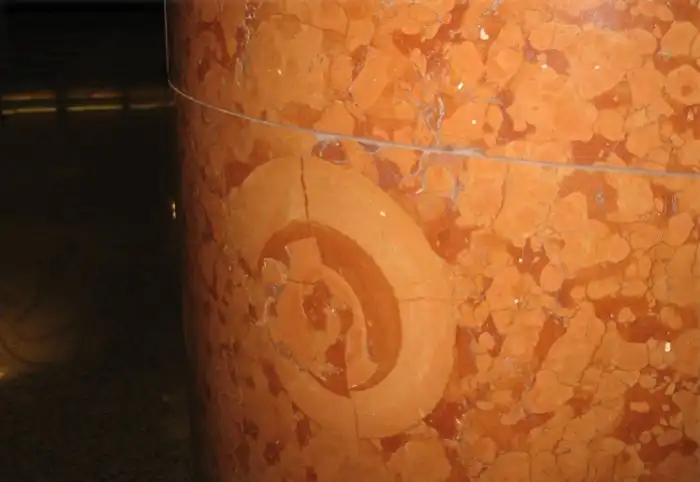 Например, самым большим "обитателем" московского метро считается аммонит на станции "Парк Победы". Диаметр его раковины составляет 60 сантиметров. Аммониты довольно многочисленная группа морских хищных беспозвоночных животных (относятся к классу головоногих моллюсков).