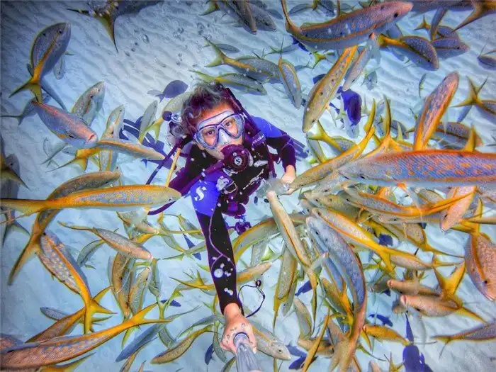 "Быть под водой - все равно, что очутиться в совершенно другом мире, - рассказывает Амелия. - Там очень спокойно и часто попадаются очень симпатичные животные".