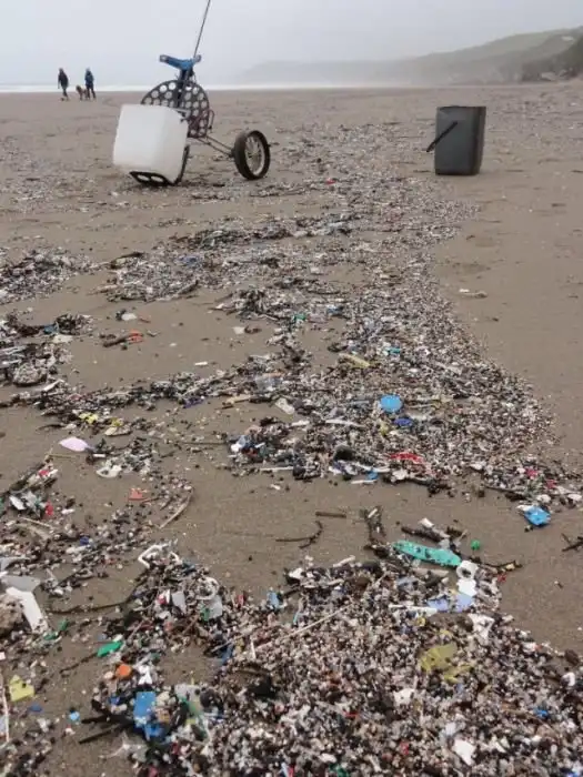 В Великобритании на пляже Трегантл мужчина по имени Роб Арнольд собрал 35 мешков пластикового мусора. Чего только не оказалось в этом мусоре, поэтому Роб занялся сортировкой мусора. Все было аккуратно разложено и отсортировано, и вот, что из всего этого вышло.