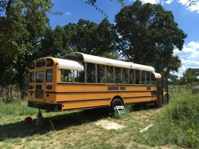 Дом на колесах в старом школьном автобусе