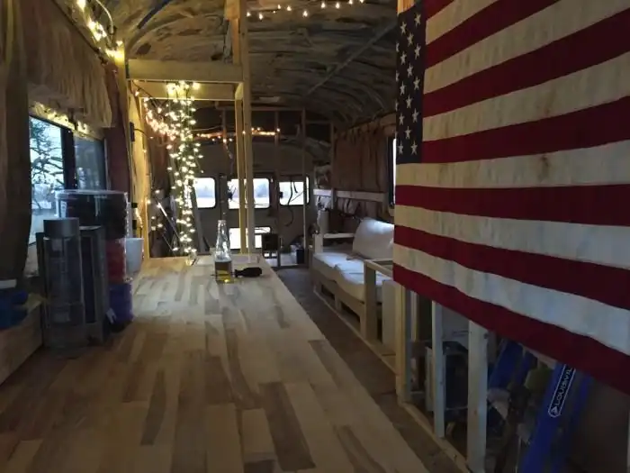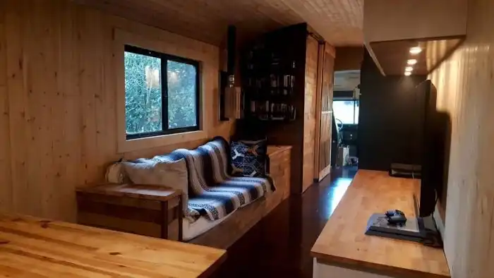 Купив на интернет-аукционе автобус за 2 200 долларов, Талли потратил еще порядка 15 000 долларов на то, чтобы превратить его в дом своей мечты. Все работы мужчина выполнял самостоятельно, для этого ему пришлось научиться пользоваться инструментами, работать с различными материалами, обрести навыки электрика и экономить на всем. Автобусу подняли крышу, удалили окна и разделили его внутреннее пространство на несколько зон. В задней части расположена спальня, посередине рабочее место и зона отдыха, а в передней части разместилась кухня. Проект был закончен в 2016 году, и с тех пор Талли постоянно живет в своем мобильном доме.