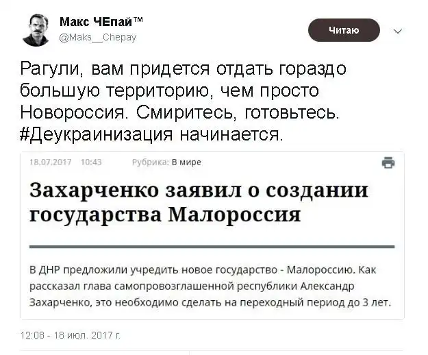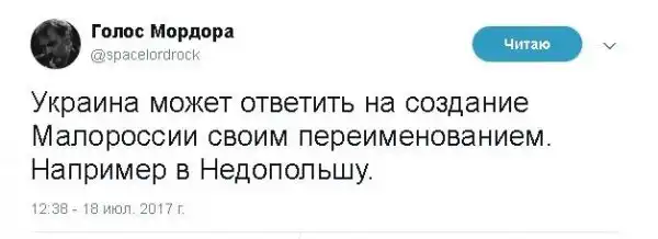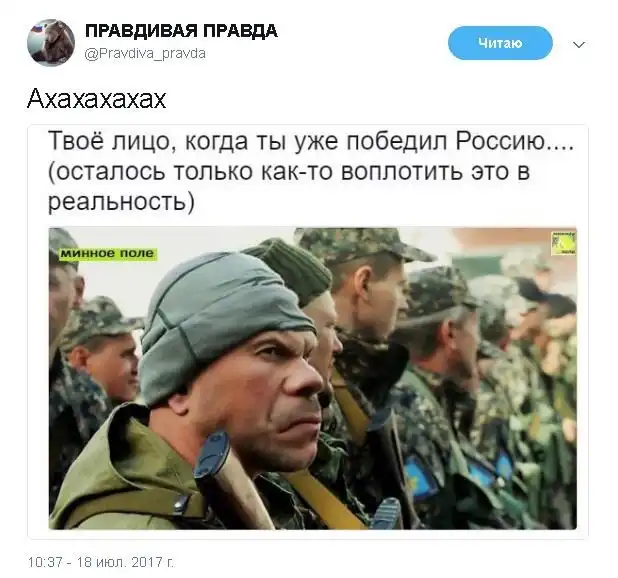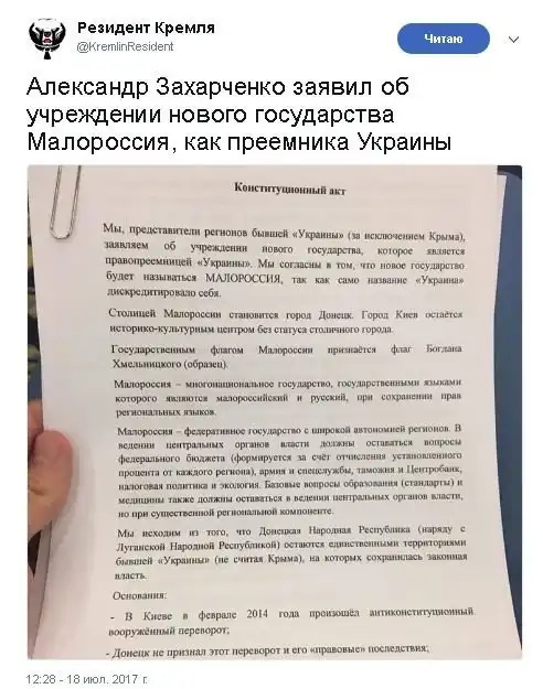 К требованиям Малороссии можно хорошо адаптировать виселицу для главарей бандитов, и для тех, кто сам не сложит оружие. Государство блин, - шайка из нескольких тысяч местных и приезжих боевиков, путинских ихтамнетов с особыми поручениями, кремлевских инструкторов и медийщиков. И сотни тысяч заложников-гражданских, используемых как живой щит против атак ВСУ. Прицепить этим "государственным деятелям" бороды - и получатся чеченские террористы из 90х, которые такими же шайками захватывали города и села. Грозный, кстати, как и Донецк, был захвачен "борцами за свободу". Где теперь эти бойцы.
