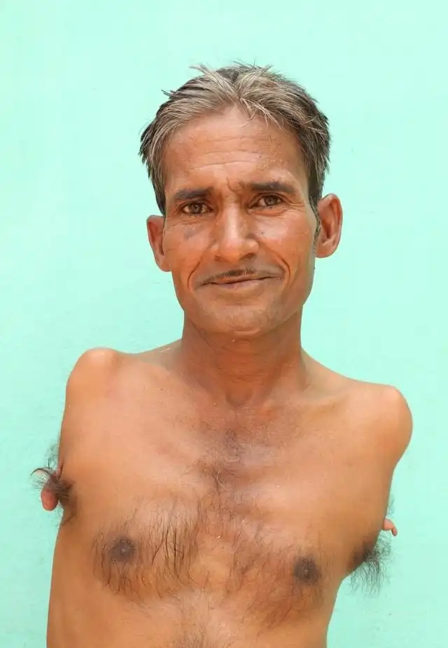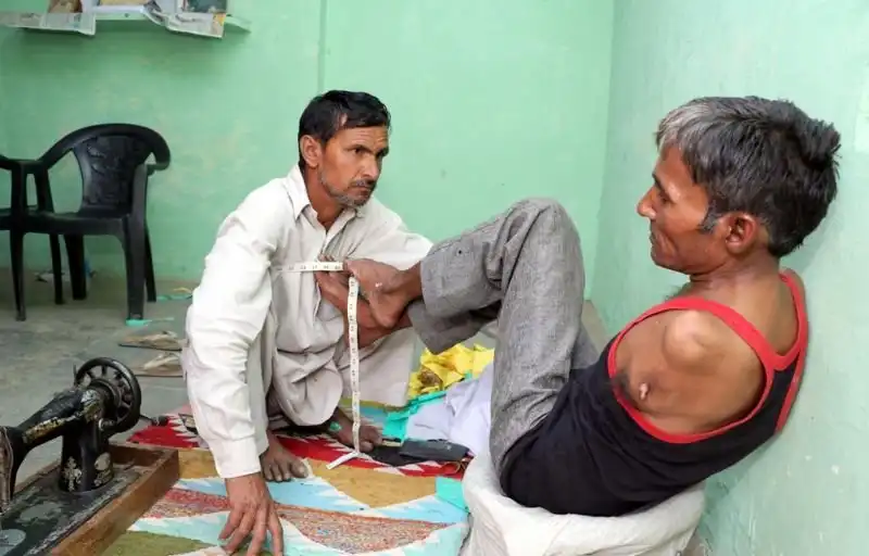 45-летний Мадан Лал из индийского штата Харьяна из-за генетического расстройства родился без рук. Но это не помешало ему стать одним из самых уважаемых портных своего города. Мадан отлично управляется с измерительной лентой и швейной машинкой с помощью ног.
