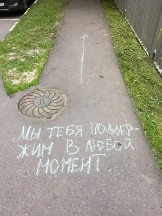 Автор этих фото решил идти по указаниям стрелок, которые вели от одной надписи на асфальте к другой и вскоре он подошел к стадиону. Воодушевляющие надписи ребят подняли настроение парню и он не сдержался, чтобы не выполнить несколько упражнений, проделав такой путь. Теперь все это вошло уже в привычку и автор снимков регулярно занимается на данном стадионе.