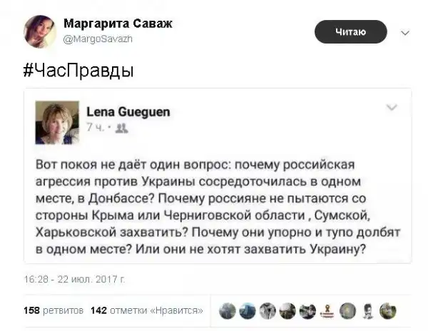 Если вы не знаете теории за что надо выходить на улицу и кого поддерживать , то любой провокатор вас заведет в дебри хаоса, кастрюлеголовые скакали против олигархом , а получили упыря еще большего - а нам нужно попытаться мирным путем как в Крыму всенародный массовый референдум, но только более масштабно.