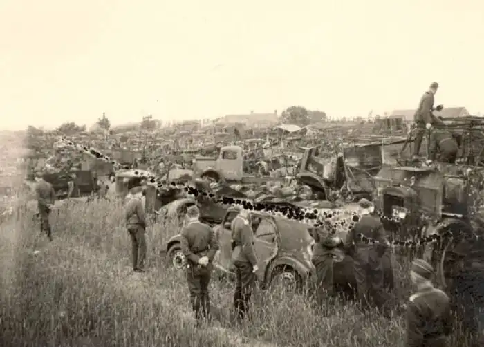В сети опубликовали сделанные немцами фото французского города Дюнкерк, который в мае 1940 году был захвачен силами Вермахта. В городе проводилась эвакуация британских и французских военнослужащих, а также мирного населения, в ходе которой было эвакуировано более 300 000 человек. Тем не менее, нацисты захватили порядка 80 000 военнопленных, а также технику и машины, которые изображены на этих ранее публиковавшихся фото.