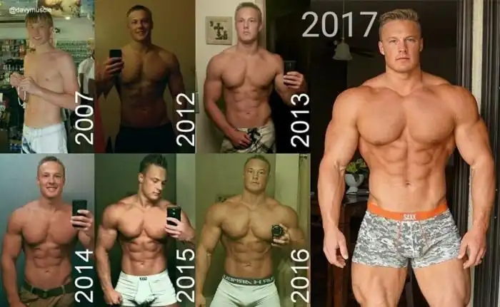 Американский бодибилдер Дэви Барнс из города Скотсдейл, штат Аризона, США, опубликовал свою фотографию 10-летней давности, а также другие снимки, чтобы показать, какой путь ему пришлось проделать, чтобы добиться своей нынешней формы. Сейчас парень весит 122 кг и говорит, что во всем этом заслуга его супруги, которая вот уже на протяжении 9 лет поддерживает его во всех начинаниях.