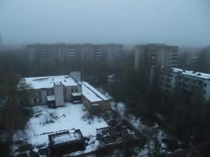 На фоне колесо обозрение, которое не успело покатать жителей Припяти
