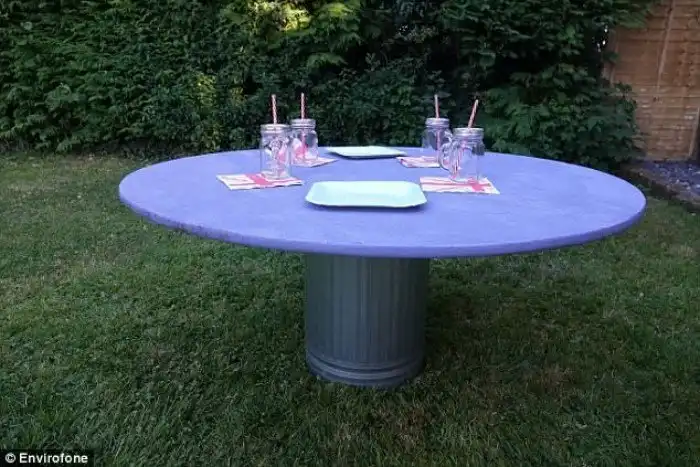 Николь Мартимор из Фарнхэма купила на онлайн-барахолке уличный столик. Когда покупка прибыла, выяснилось, что это была лишь столешница! Но мисс Мартимор с честью вышла из положения, дизайнерски приспособив в качестве ножки мусорный бак.