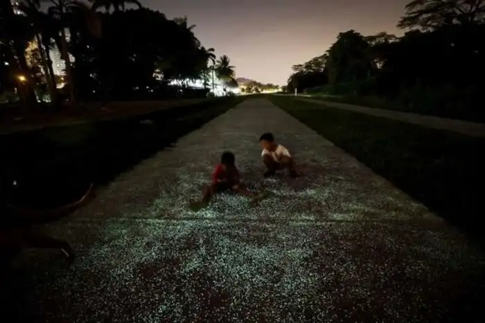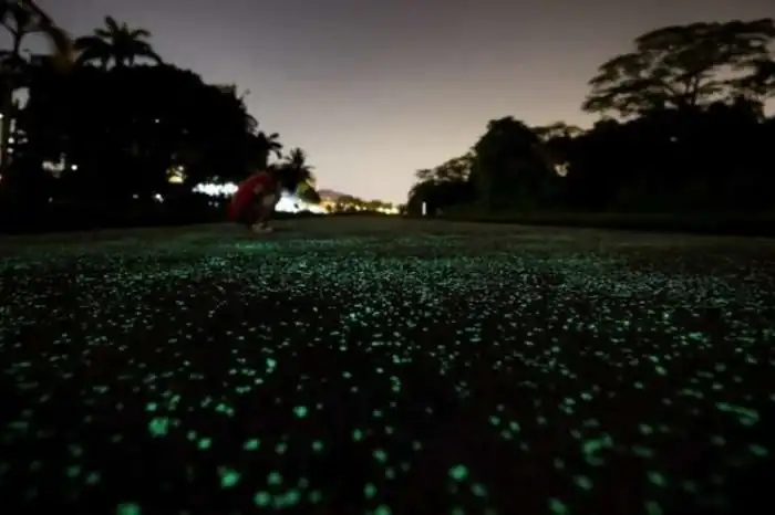 В Сингапуре открыли светящийся тротуар протяженностью 100 метров, который в будущем намерены увеличить до 24 км. Светящаяся тропа является экспериментальным проектом «Железнодорожный коридор» и построена она с использованием алюмината стронция, который днем поглощает ультрафиолетовые лучи и потому светится в темноте. Пешеходная дорога расположена на месте закрытой железной дороги, соединявшей центр города с северной окраиной. В будущем все это пространство хотят превратить в один большой парк с площадками для проведения культурных мероприятий.