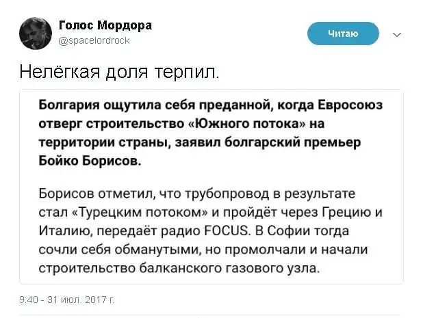 Болгары дебилы. Им в свое время нужно было обеими руками поддерживать северный поток, а не вставлять палки в колеса. И говорили ведь, что побреют вас европейцы. Так и вышло. Как то даже приятно, что за свою тупость ребята поплатились.