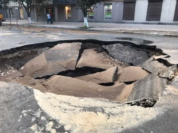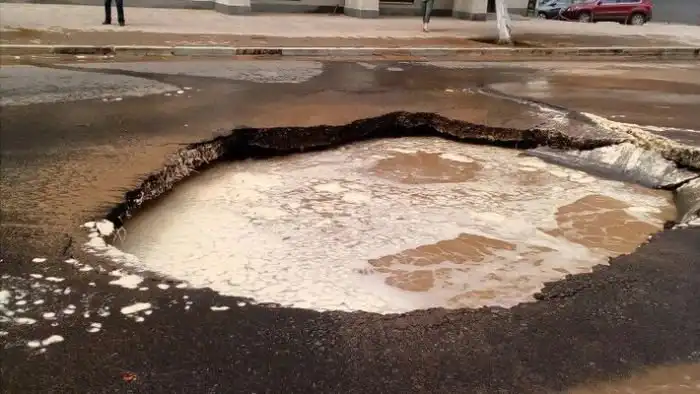 В центре Самары на улице Молодогвардейской образовалась огромная яма, заполненная водой. Причиной появления ямы стал прорыв канализации. Нечистоты заполнили дорогу и тротуар. После того как вода отошла в яме остались огромные куски треснувшего асфальта, который теперь придется ремонтировать дорожникам. Будем надеяться на то, что этот ремонт они сделают быстро и качественно.