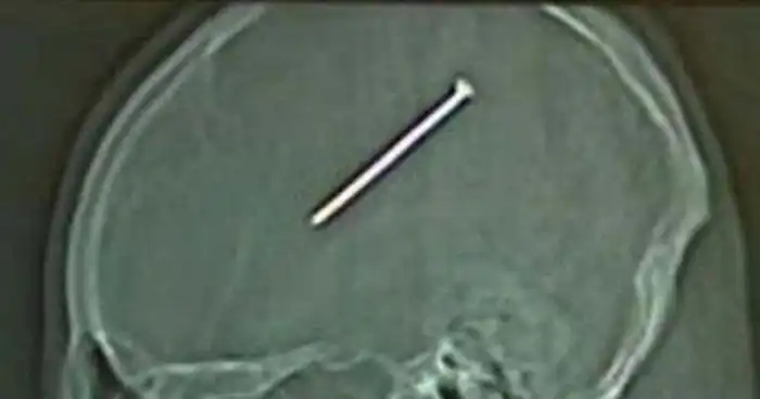 Американец Данте Аутулло во время ремонта вогнал себе в голову гвоздь длиной 9 см - пневмопистолетом для гвоздей. Мужчина обратился в больницу только спустя 36 часов после инцидента. К счастью, важные нервные центры не были повреждены.